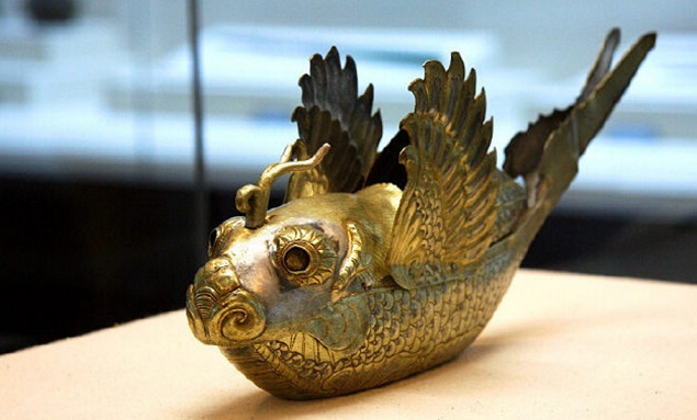 丁卯桥出土鎏金摩羯纹银盆局部(唐)