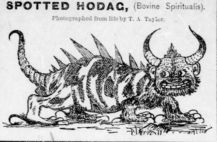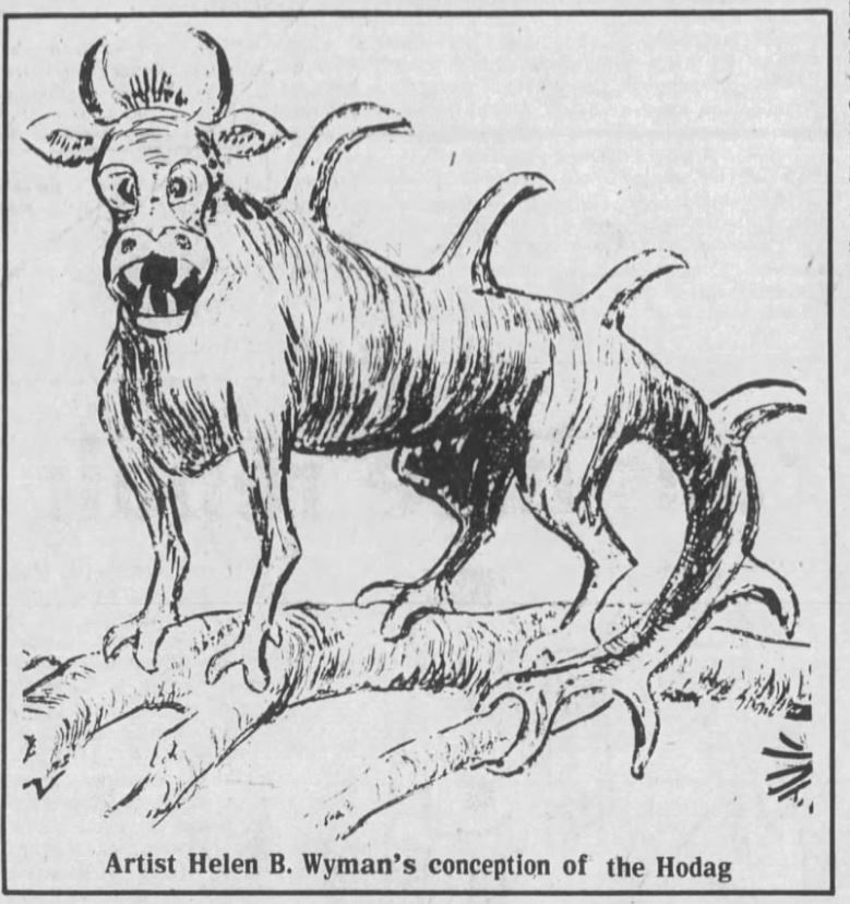 北美伐木工传说中的生物,是由谢泼德的新闻骗局诞生的传说。最后一头霍达格是在威斯康星州莱茵兰德(Rhinelander)附近捕获的,有发光绿眼睛,背部像恐龙,尾巴很长,末端像矛。脊柱上布满了锋利的刺,腿短而粗壮,爪子粗壮弯曲,身上长着粗糙的毛发,额头上布满皱纹,长着两只巨大的角。霍达格从不躺下。它靠在树干上睡觉。只有深深地凿进它最喜欢的树干才能捕获它。
