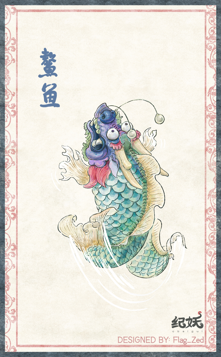 中国传说中的鱼,有龙头龟身及龙头鱼身两种分支,此条主要涉及鱼身。与龟型鳌同源,帝命禺强使十五只鳌背负五座仙山,后被龙伯吊起几只,《列子》中鳌为龟的形象。明代出现的龙九子传说将鳌鱼列为龙九子,形似龙,好吞火,立于屋脊上。一般这种立于屋脊的形象称为螭吻,但在这个版本中螭吻为屋角上兽。《彭城集》注释写民俗认为鳌鱼动会引起地震。
