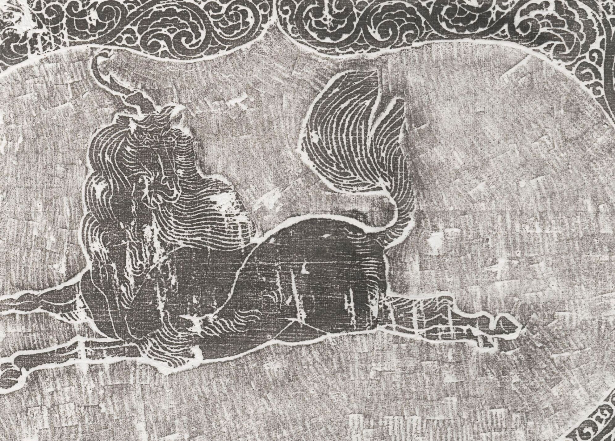 祥瑞之兽,书中记载为麕身,牛尾,一角。在汉代壁画中有时会替代玄武,为北方的象征。至明代时,独角仍为麒麟的特征。